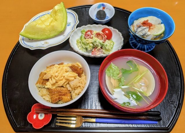 12/6[朝食] *うなぎ混ぜご飯蒸し *生牡蠣のポン酢...