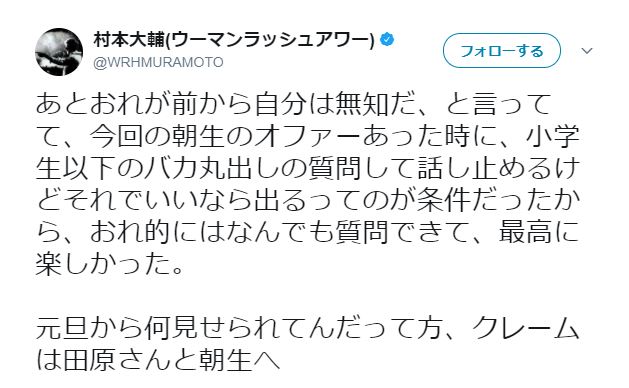 村本がツイッターで