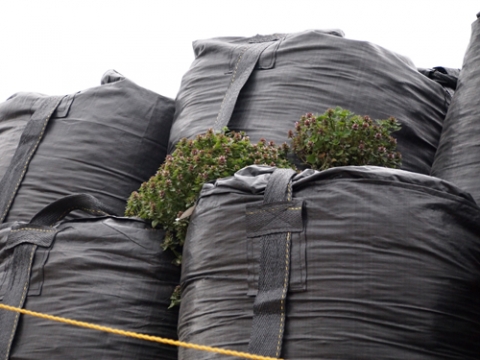 アスファルト破る雑草だから汚染土嚢なんて簡単に