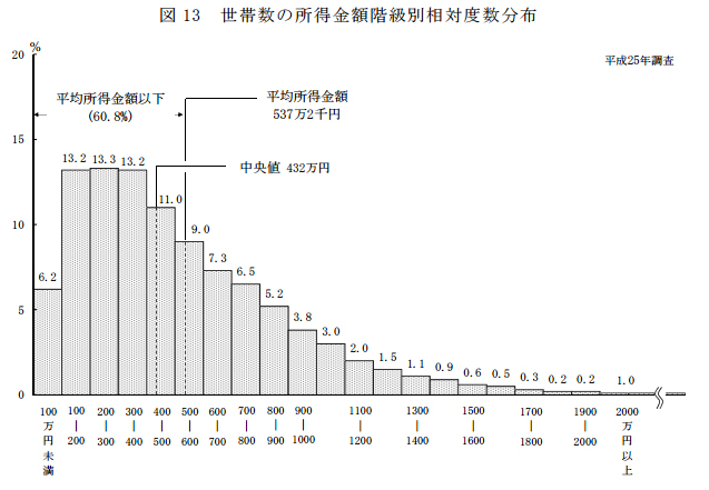現実は、中間層が崩壊して、6割以上の家族が平均値以下の所得で生活して
