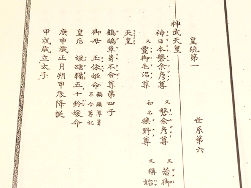 皇統第一 世系第六 神武天皇 に到達します。