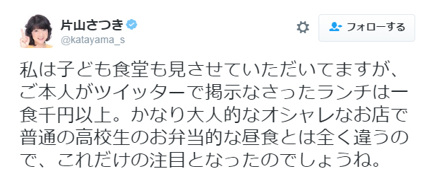 しかも、片山さつきは、「ランチ」と「弁当」の違いもわからないのだろうか。