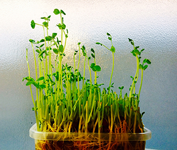 さすがに未発芽の豆が減って頼りないフォルムだけど、毎日、水をとりかえて