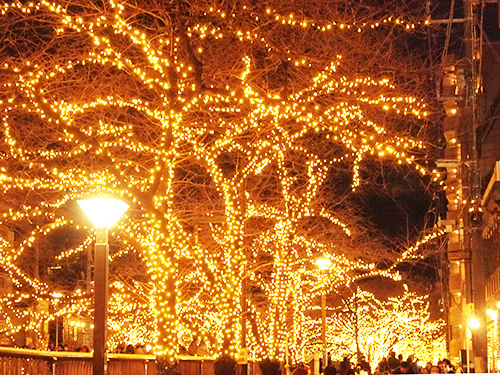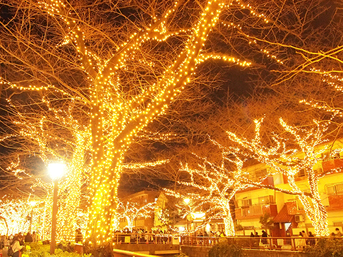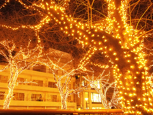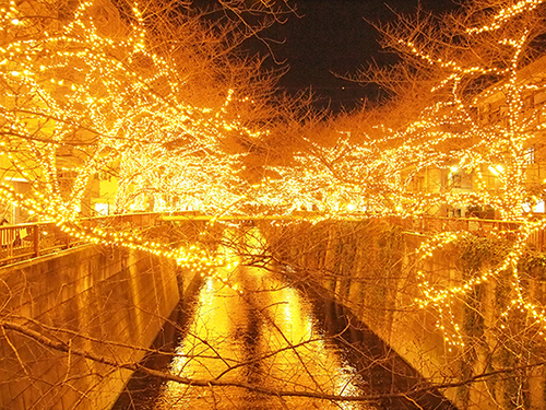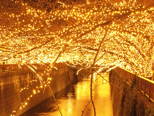 中目黒の目黒川イルミネーション、今年はゴールド。
