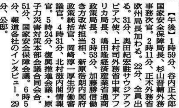 さらに、今朝の朝刊「首相動静」欄を見て、不信感が募った。