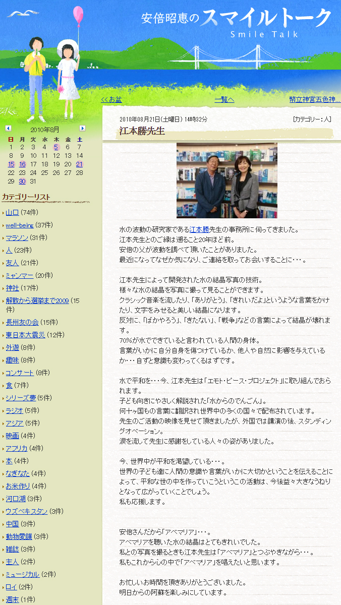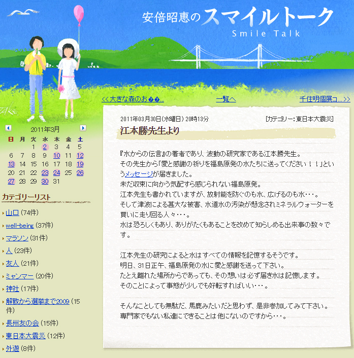 資料2 かつての昭恵夫人のブログ「安倍昭恵のスマイルトーク」