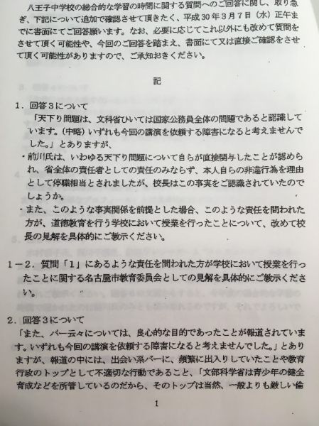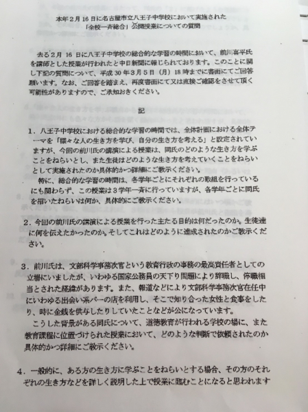 文科相前川講師弾圧事件。