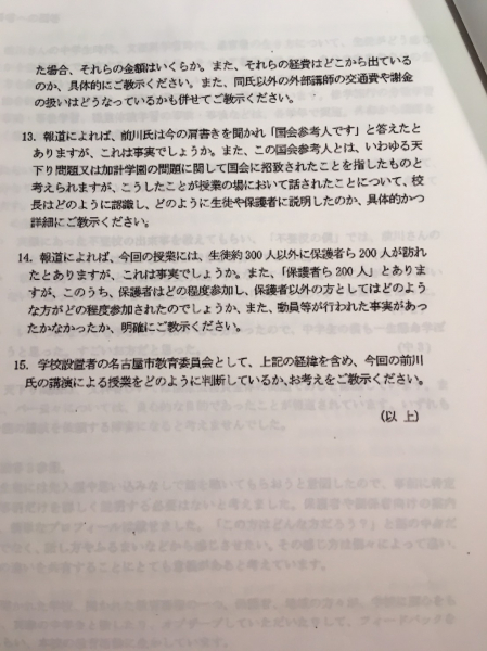 「前川は講師として不適切だったと言え!!」