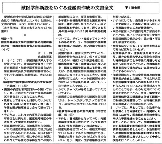 下村博文元文科相が、愛媛県職員の官邸訪問備忘録について、