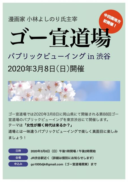 来たる3/8(日)小林よしのり先生が主催する「第88回ゴー宣道場」が初の岡山で開催されます!