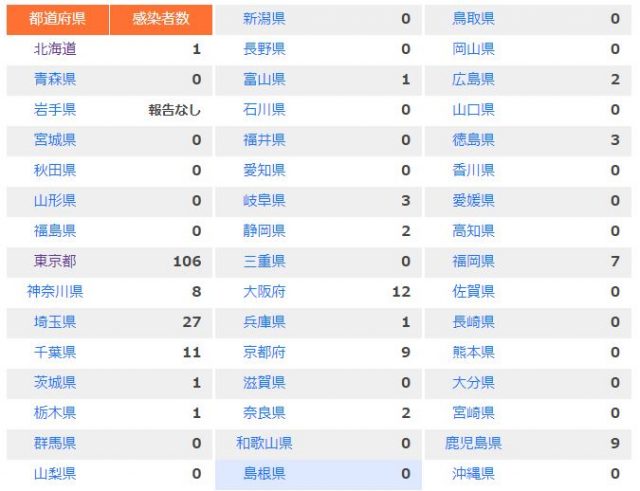 …と思って、都道府県別の新規感染者表を見てみたら、