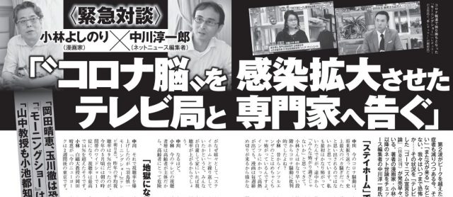 週刊ポストに〈緊急対談〉 小林よしのり×中川淳一郎 「〝コロナ脳〟を感染拡大させた テレビ局と専門家へ告ぐ」掲載!