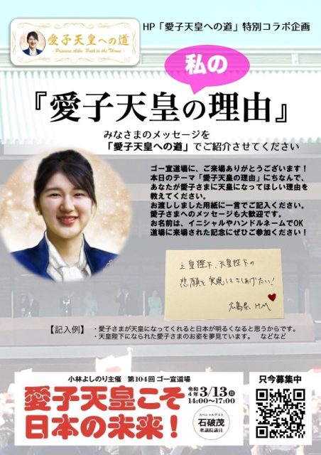 さらに今回は、サイト『愛子天皇への道』(旧:愛子さま皇太子への道)との特別コラボ企画を行います。