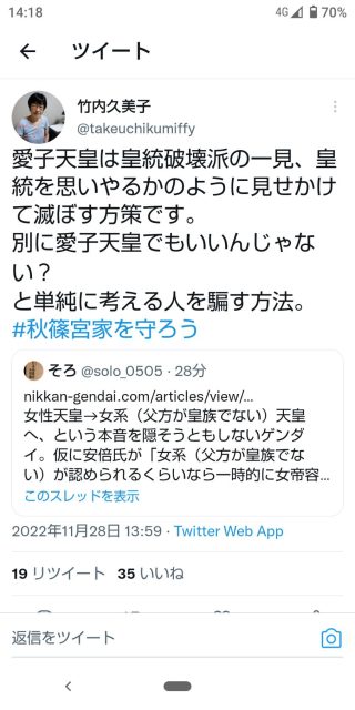 男系統一固執協会派の竹内久美子を、