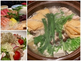 お刺身、サラダ、鶏鍋・・・と