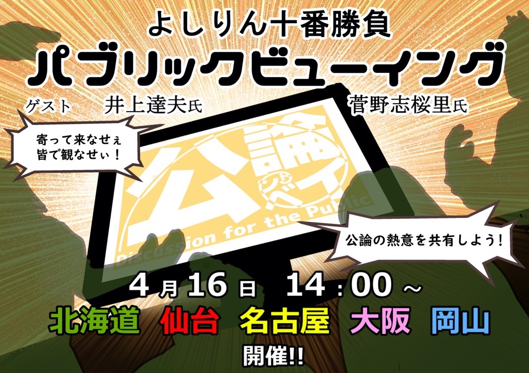 4月16日よしりん十番勝負、パブリックビューイングのお知らせ!