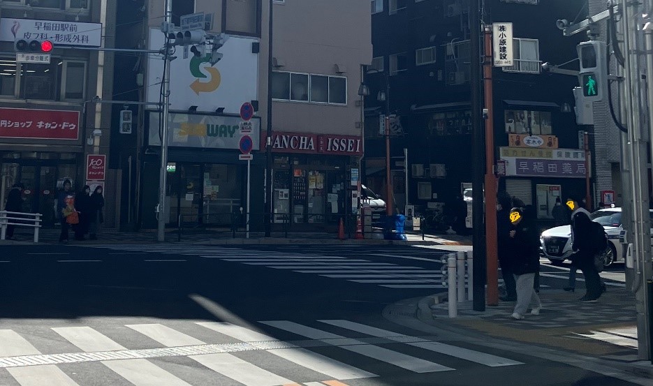 現場は歩行者用と車両用の信号が分離したいわゆる