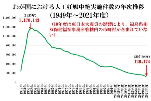 厚労省の衛生行政報告例によると、明治に作られた堕胎罪が今も存在する現代の日本でも、2021年度で年間約12万件の堕胎が行われており、多くは学生と思われる10代と、妊婦としては高齢期の予期しない妊娠と思われる40代後半~50代で高い堕胎率を示しています。