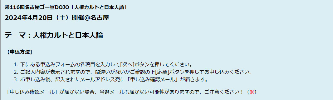 思い立ったが吉日!!今スグ応募しましょう!ゴー宣DOJOin名古屋