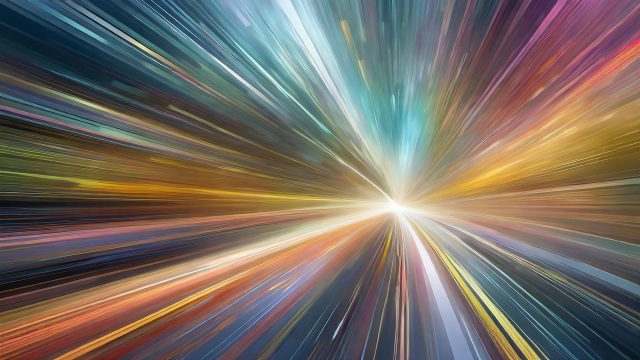 多くの方はこのビジュアルから「スピード」のイメージを感じるでしょう。それは、無数の「線」が「高速移動中に連続して映っているもの」を想起させるからです。