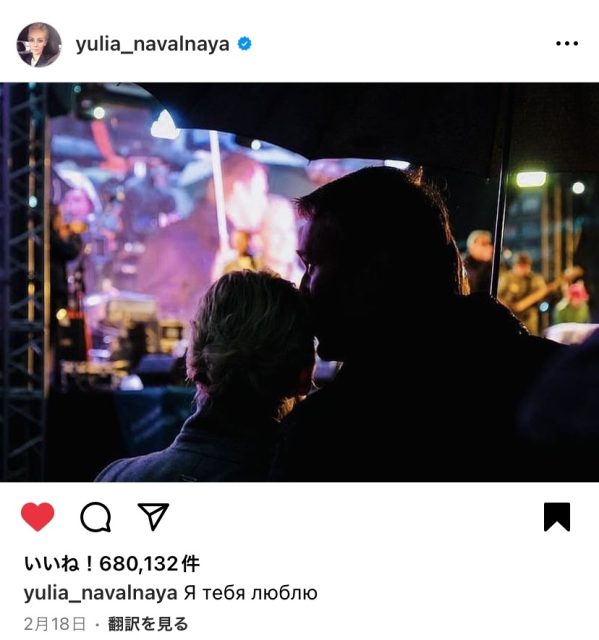 ユリヤさんは訃報を受け取った後の18日、ナワリヌイ氏と写った後ろ姿の2人の写真をSNSに投稿し「愛してるよ」と書き添えた。