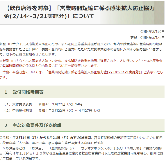 22時以降の営業をしていた居酒屋が1店舗あたり19時に閉店又は休業することで以下の金額が支払われました。