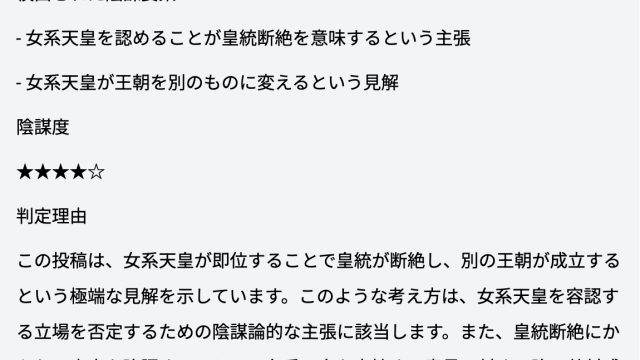 「女系天皇で皇統断絶」は陰謀論(←男系固執論者のAIが回答)