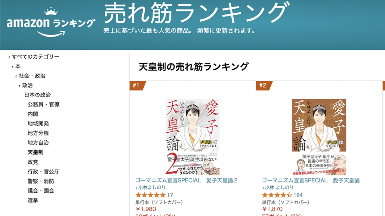 愛子天皇論「1」も動いてる!