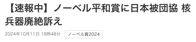日本原水爆被害者団体協議会がノーベル平和賞受賞!