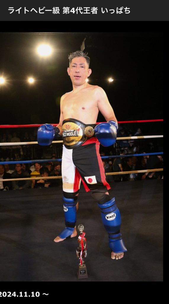 いっぱちさん、キックボクシングイベント・ナイスミドルでチャンピオンに!