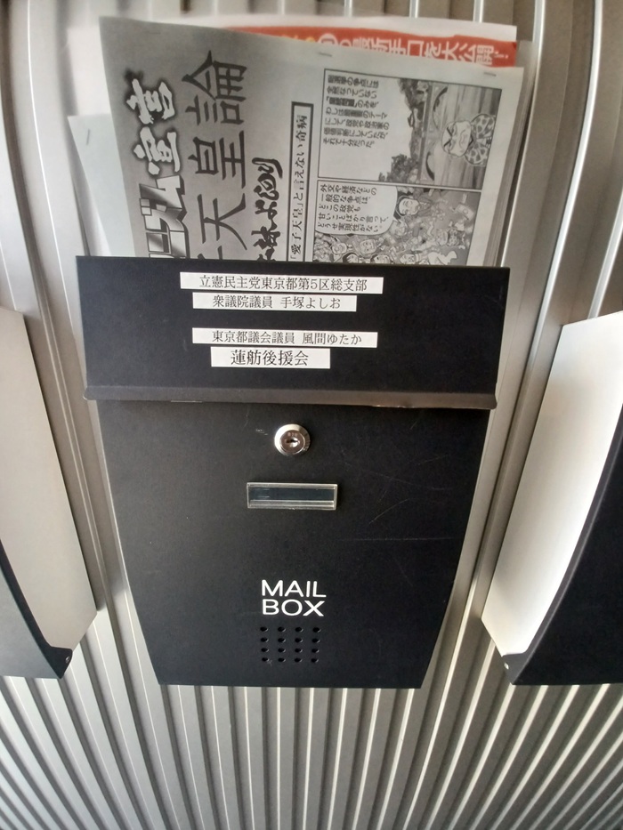 手塚よしお事務所と落合貴之事務所に本日発表の愛子天皇論『「愛子天皇」と言えない奇病』を届けてきた。