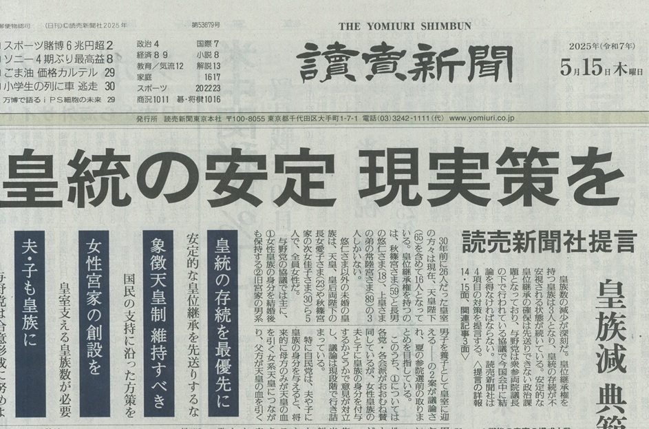 読売新聞「皇統の安定 現実策を」この意味はとてつもなく大きい!