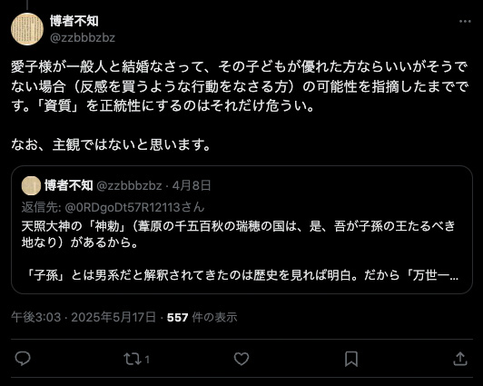 男系固執を理詰めすると「信仰告白」になる