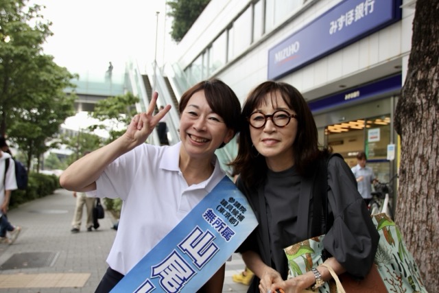 演説終了後、山尾さんにエールを送りたい人たちが、