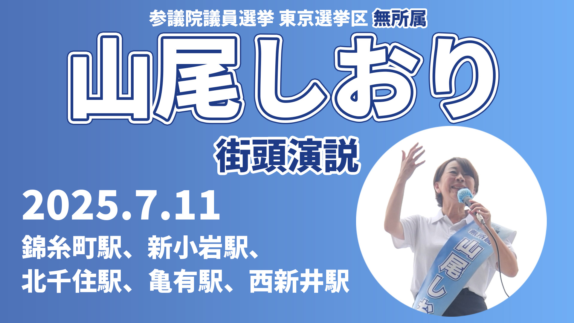 山尾しおりさん演説 7/11ライブ配信アーカイブ一覧