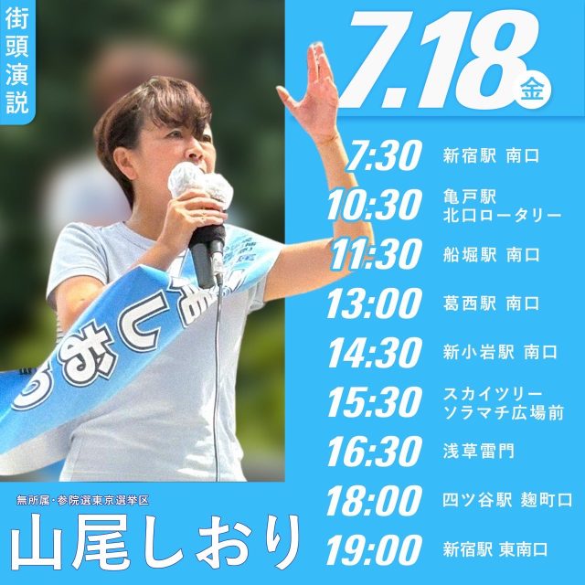 7/18 山尾しおりさん演説予定とライブ配信アドレス