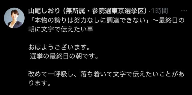 選挙戦最終日の朝に 山尾しおりさんが「文字」で伝えたい事