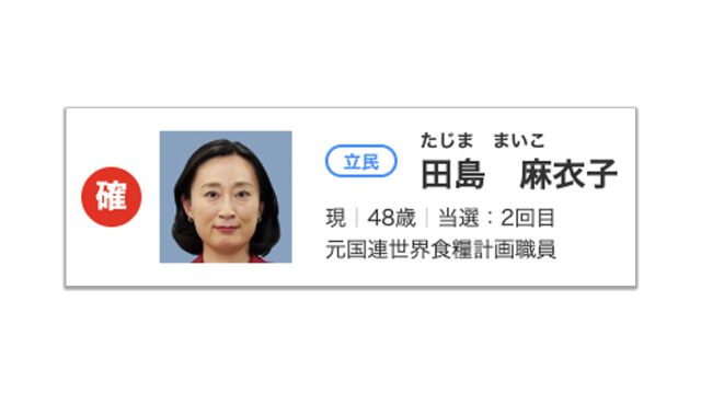 田島麻衣子さん、当確!