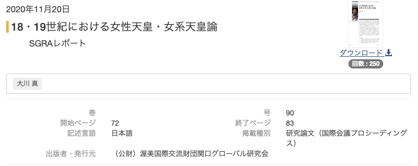 著者の大川真氏(中央大学文学部教授)については、今年の2月にも「皇位継承について学術的かつ端的に綴られた良記事」というブログで紹介させて頂きました。こちらで取り上げた記事「皇位継承の歴史を考える」も必見です!