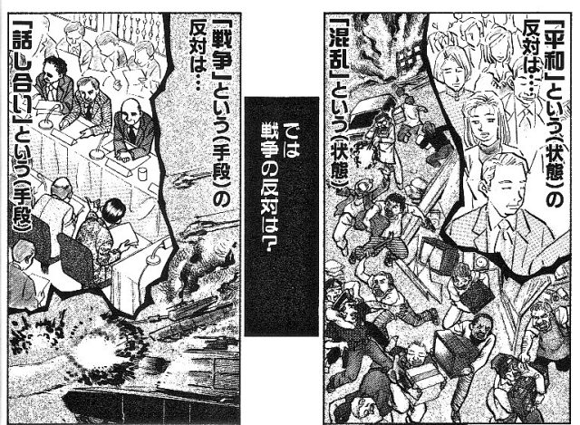 平和の反対は戦争では無く無秩序であり戦争の反対は話し合いである。