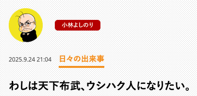 あーっ!3日前のよしりん先生のブログじゃないか!(ウシハクの方を強く意識してたので、不覚にも動画収録中にはすぐにつながらなかった)。