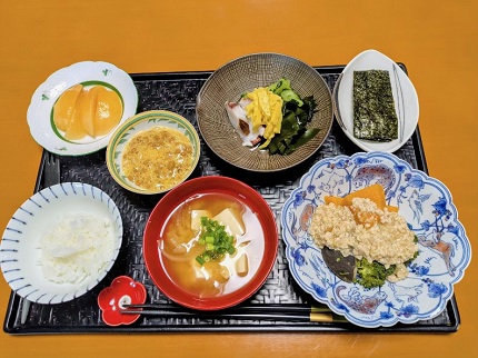 *かぼちゃ·ブロッコリー·椎茸の鶏そぼろ餡かけ
