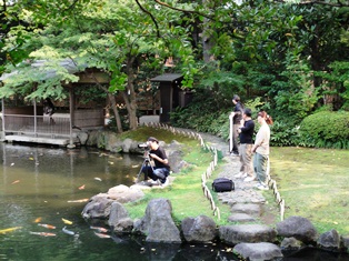 ↑ なぜか撮影スタッフの方にばかり集まる鯉たち・・・